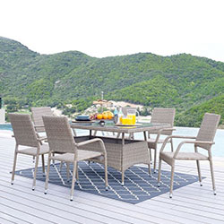 Top Products:Our dining sets offer you a combination of style and features with their elegant wooden patterns and exquisite oak finishes. These dining sets will look great at an elite outdoor dinner party or at a relaxed family dinner.