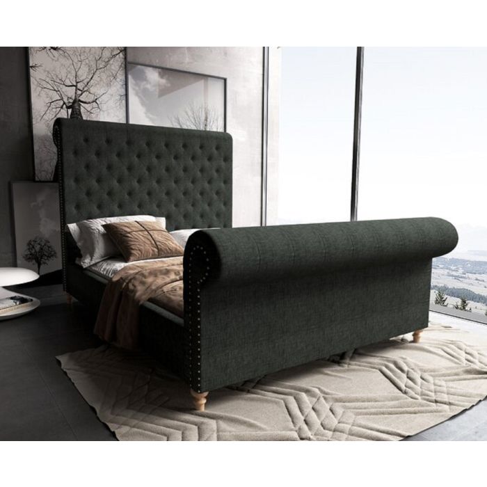 - Scroll Design Footboard Finish with Diamond Button Stitching.